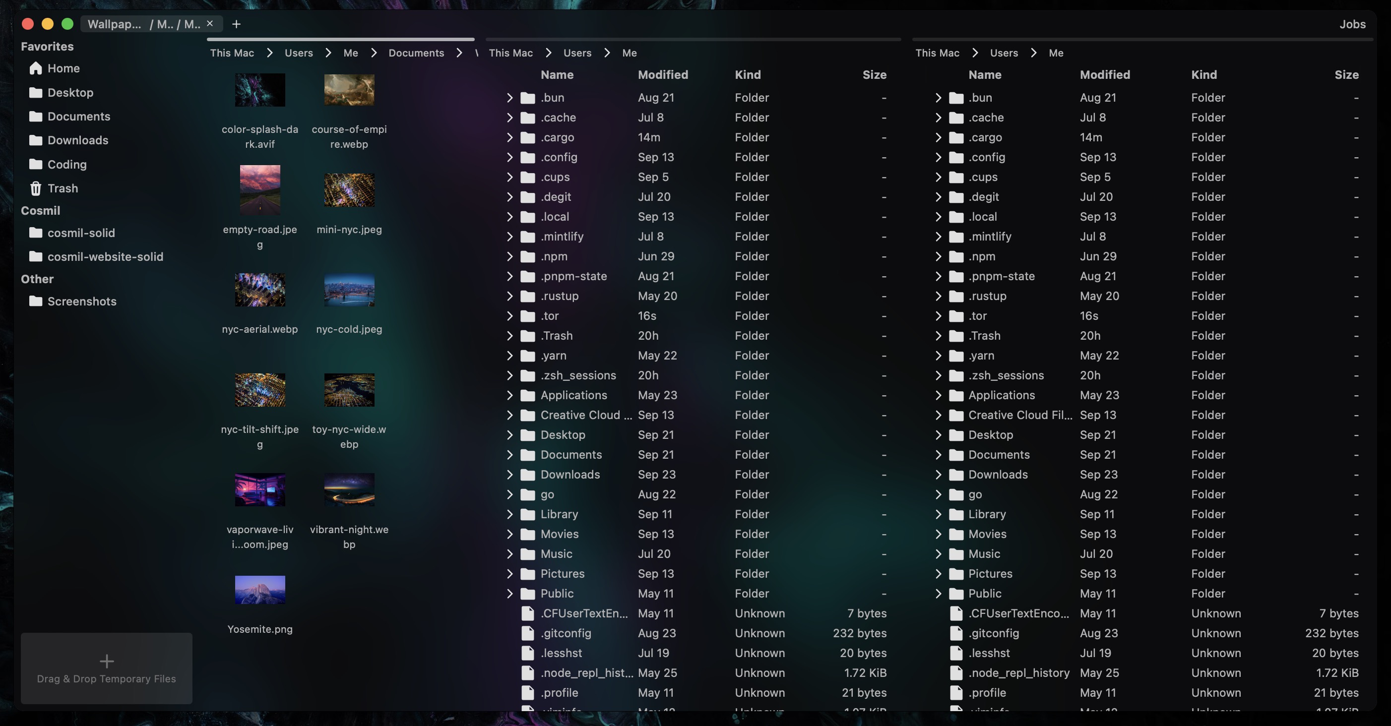 Use the OSX QuickLook feature right inside Cosmil to preview files, just as you would in Finder.