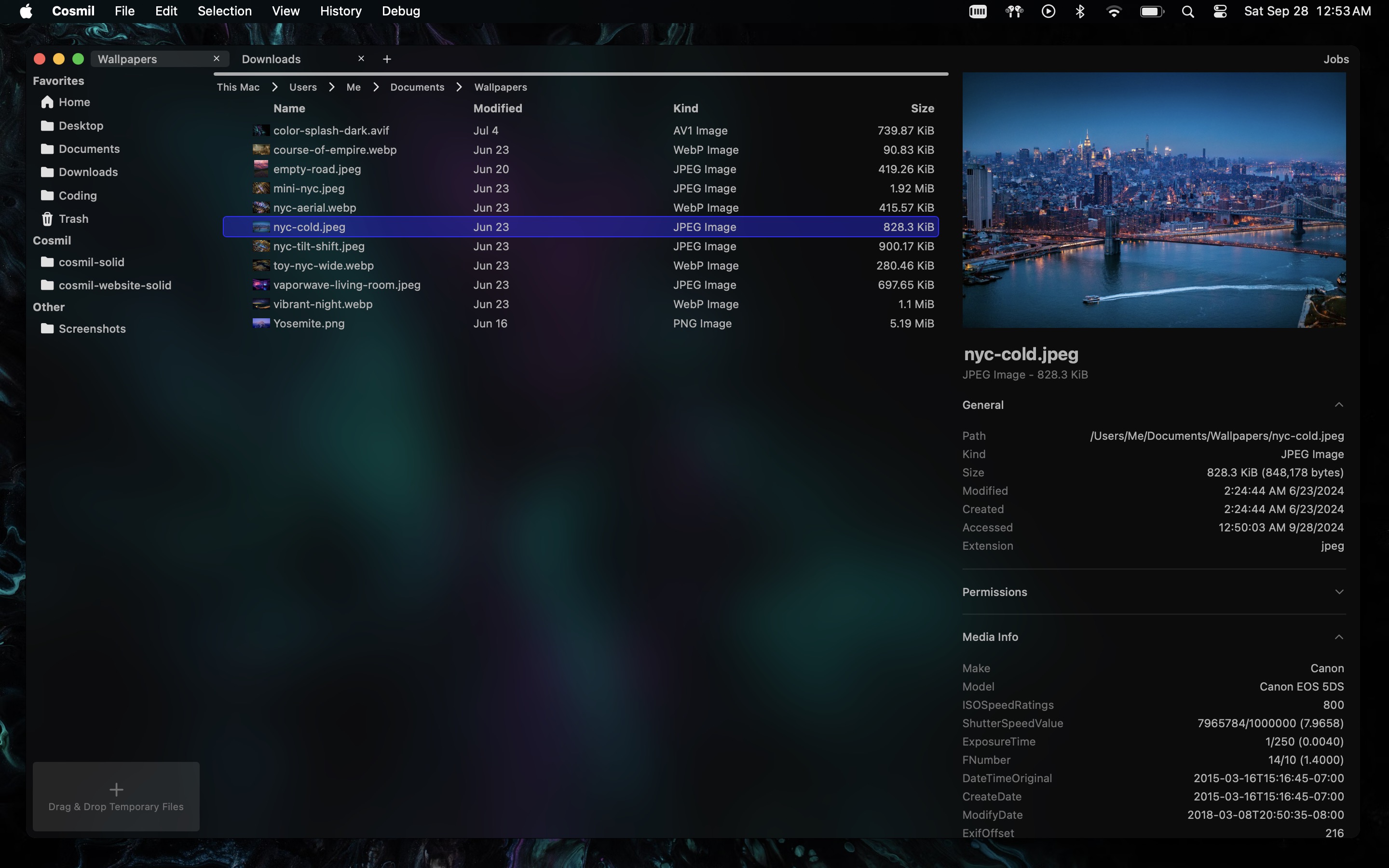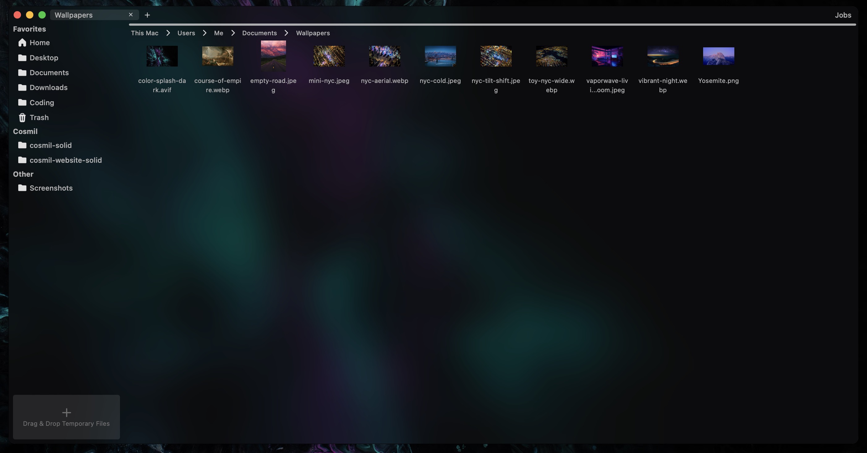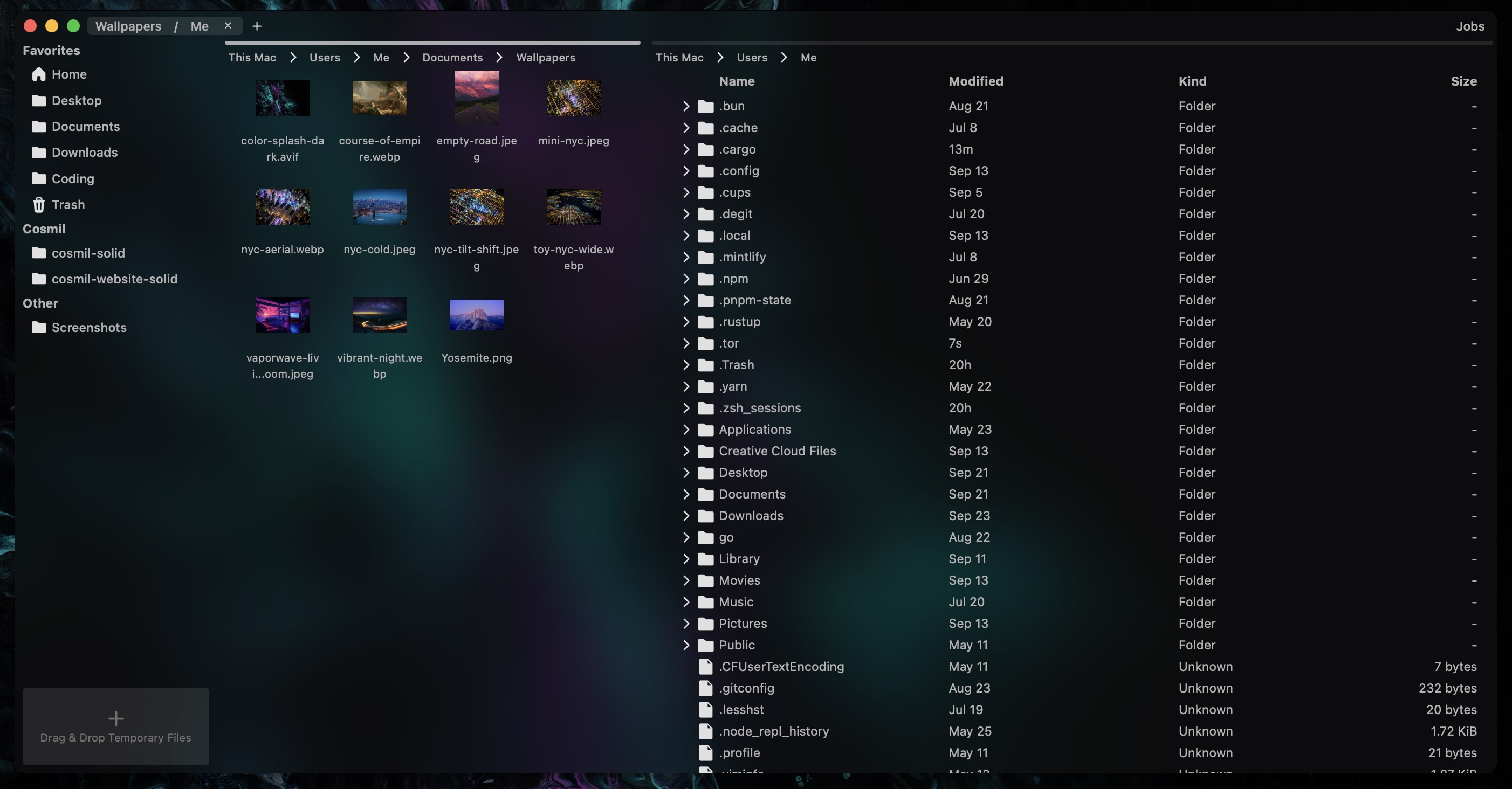 Use the OSX QuickLook feature right inside Cosmil to preview files, just as you would in Finder.